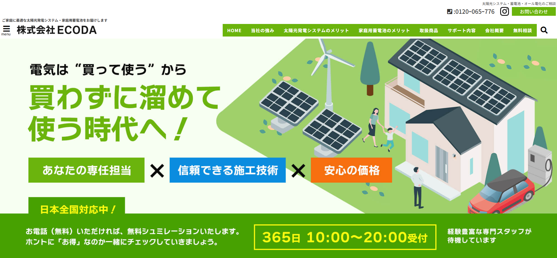 株式会社ECODAは、東京都渋谷区に本社を構え、太陽光発電システムや蓄電池、オール電化などの販売・施工を行う専門企業です。