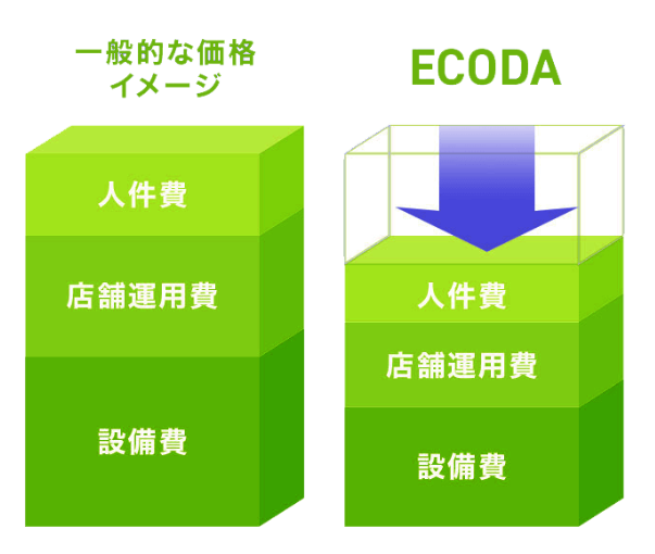 ECODAは以下の3つのポイントで低価格を実現しています。