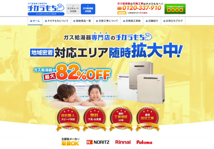 多数の営業所を持つ広範囲な対応エリアと、給湯器やエコキュートの交換・修理など多数の事例と実績があります。その高い技術と経験は、メディアにも取り上げられるほどで、緊急時にも素早く対応し、専門スタッフが確かな技術と経験で安心・高品質なサービスを提供します。