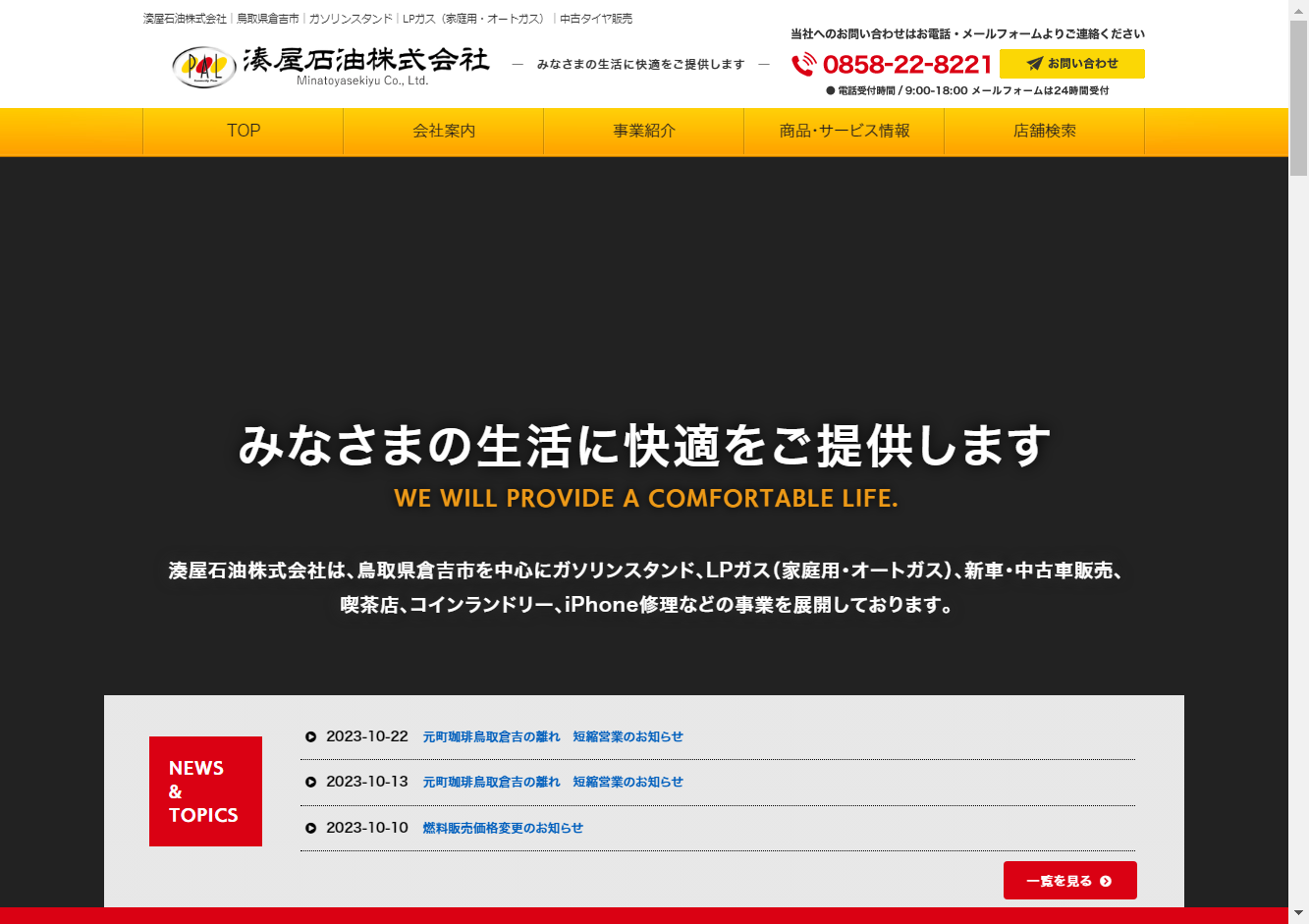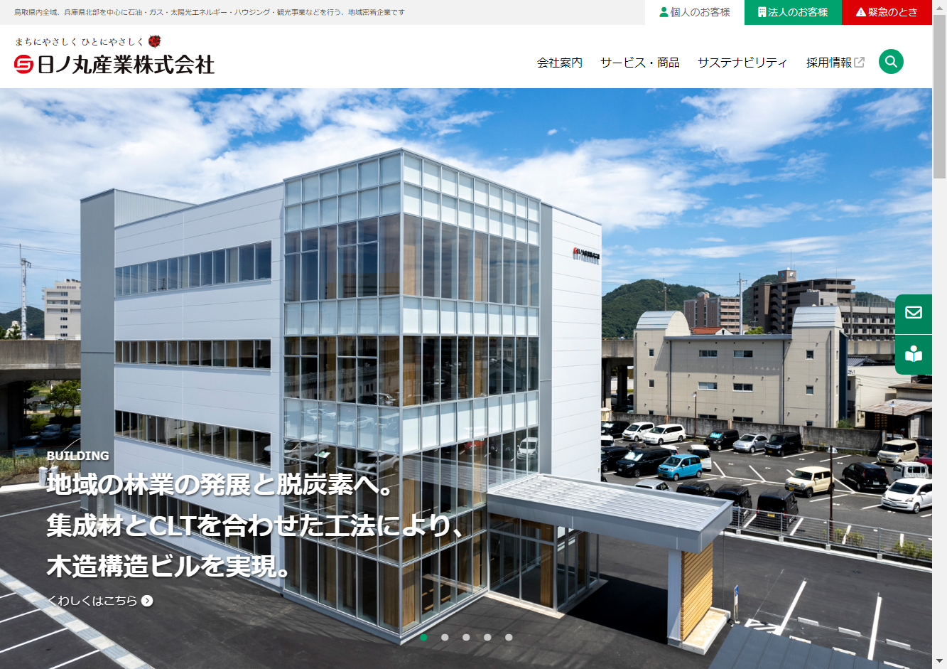 日ノ丸産業株式会社鳥取県富安を拠点に、鳥取県全域と兵庫県北部を対応エリアとして、エネルギー供給から新築・リフォーム、カーライフサービスまで幅広く対応している地域密着型の企業です。