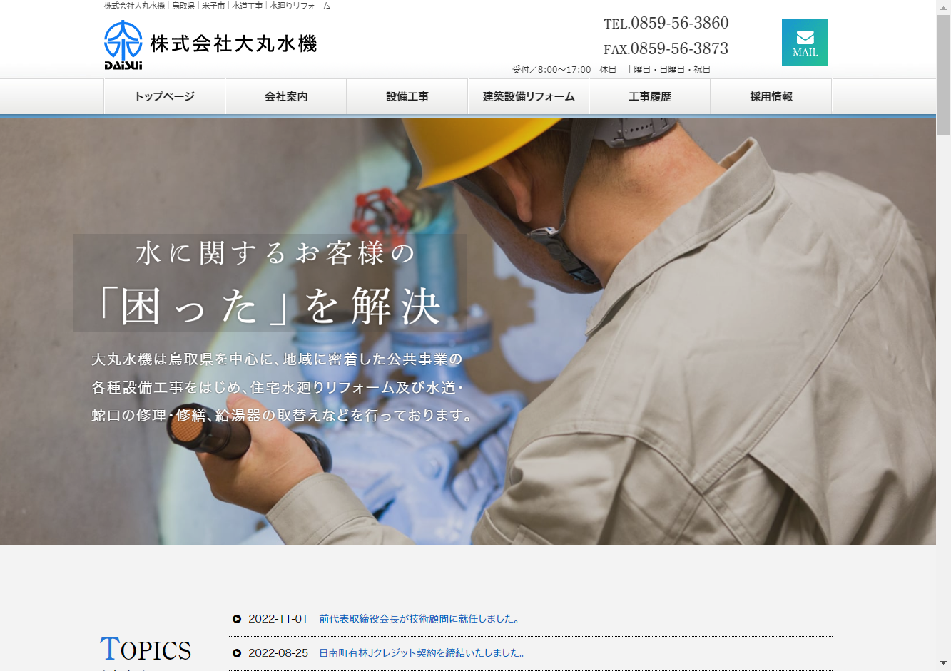 株式会社大丸水機「基本に忠実に」をモットーとし、地域に密着した公共事業を展開している経験豊富な会社です。鳥取県米子市淀江町を拠点に、お客様のご要望に忠実に応えるサービスを提供しています。家庭用の水廻り品から大型ポンプまで、水に関して全般の取り扱いが可能で、公共事業の各種設備工事から住宅水廻りリフォームまで対応しています。公共事業の各種設備工事、住宅水廻りリフォーム、水道・蛇口の修理・修繕、給湯器の取替えを行う信頼性の高い会社です。設立以来、官公庁工事の優良表彰を多数受賞し、地域の発展に貢献してきた実績があります。
