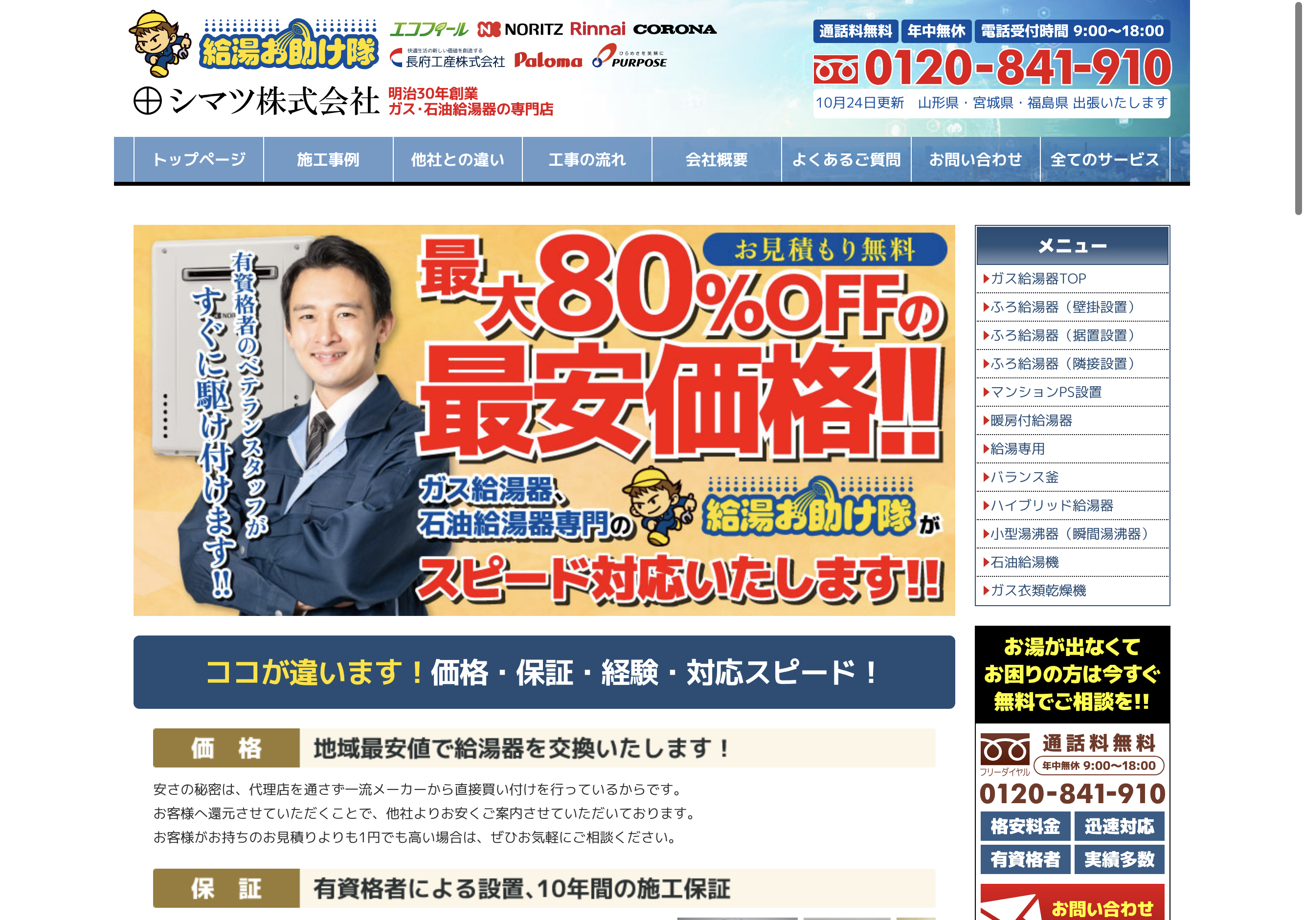 給湯器駆けつけ隊 ミズテック | 街角給湯相談所 | ガス救fromおうちのアラート | キンライサー | 給湯お助け隊 |