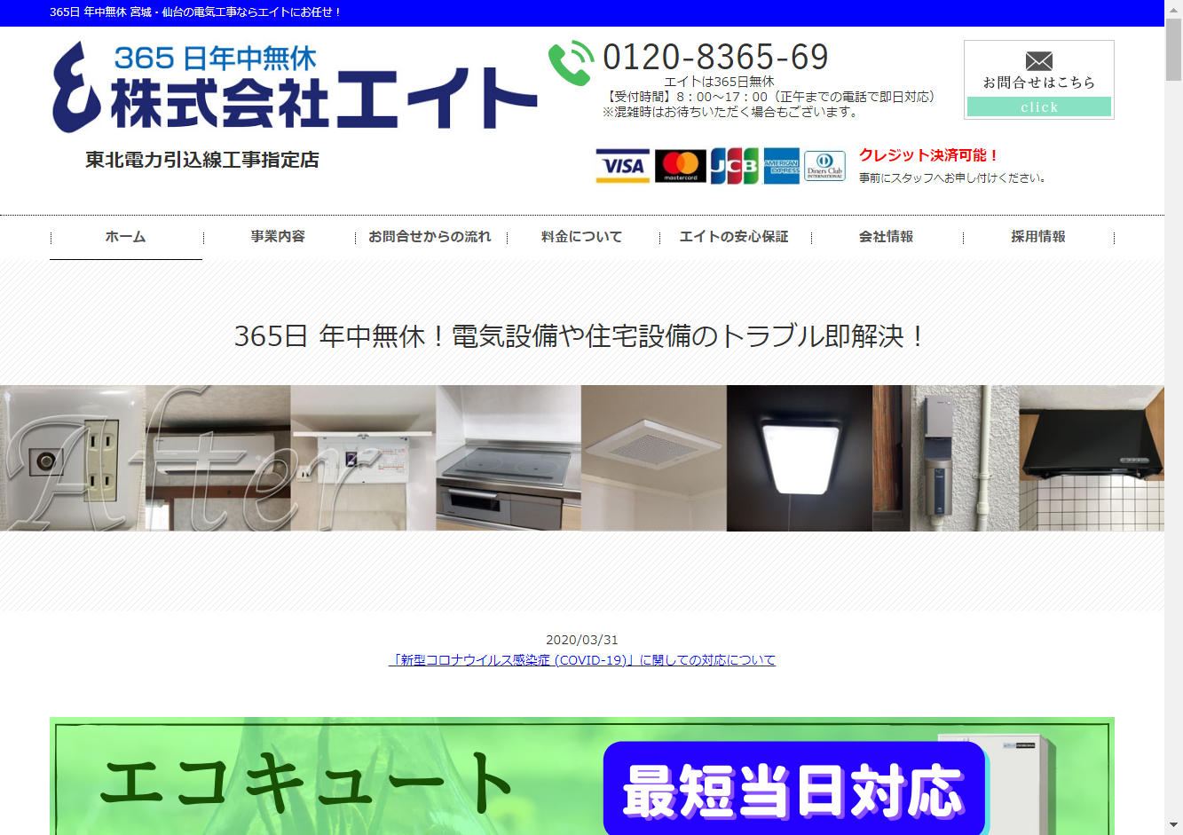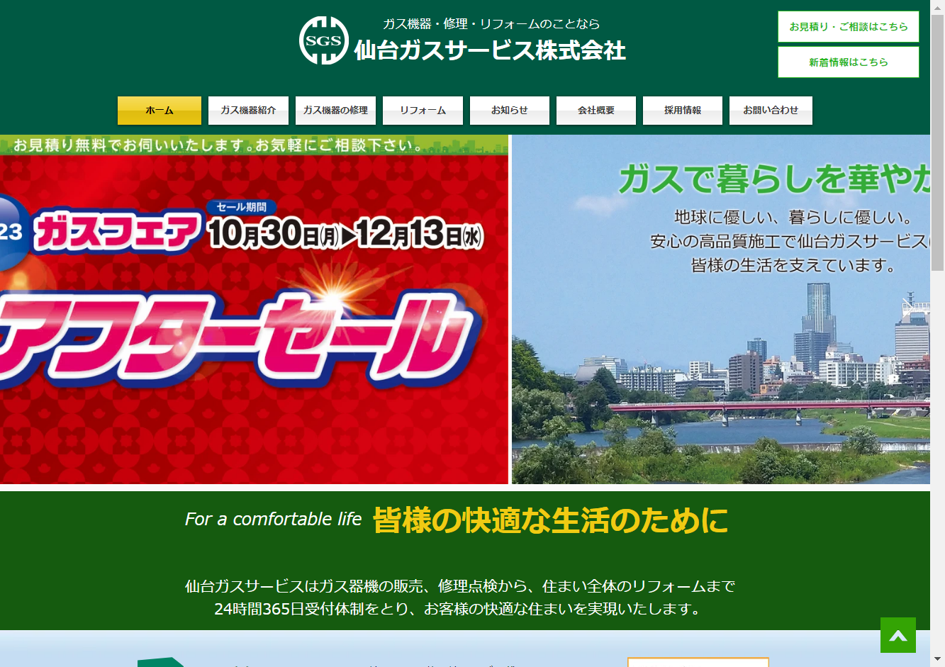 給湯器、灯油タンク、暖房機器、ガスコンロ、家庭用エアコン、業務用エアコン、衣類乾燥機、トイレリフォーム、キッチンリフォーム、食洗機、IHクッキングヒーター、住宅用太陽光蓄電池システム、法人用太陽光蓄電池システムの取り扱いが可能な会社です。地域の「快適な暮らし」を創造するために、最短当日対応と確かな技術力を持ち、インターネットで購入した機器の取り付けも可能です。