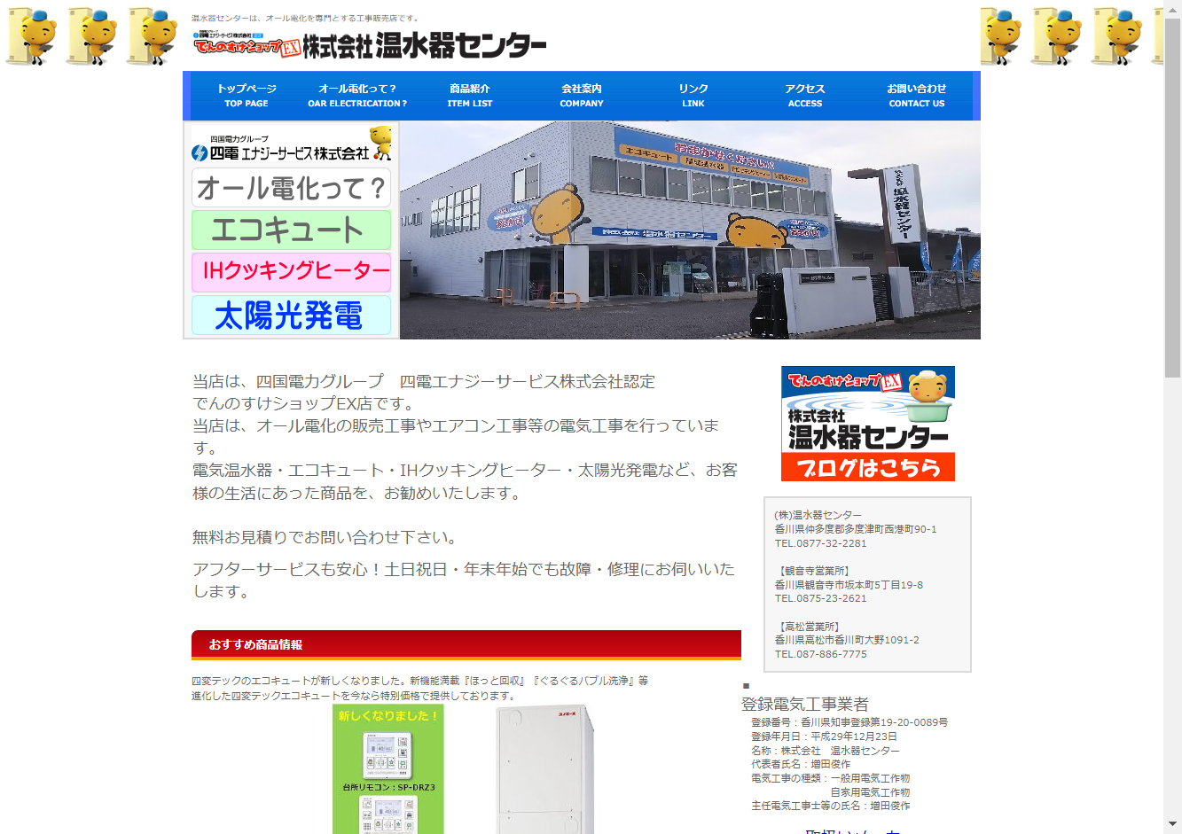 株式会社温水器センター四国電力グループの認定店であり、豊富な商品ラインナップと充実したアフターサービスを誇るオール電化の専門店です。その信頼性と経験があらわれているのが、生活に合った商品のお勧めと無料の見積もり提供。さらに、土日祝日や年末年始でも故障・修理に対応しています。また、新商品情報の提供や多様な支払い方法の選択肢も顧客のニーズに応えるサービスです。
