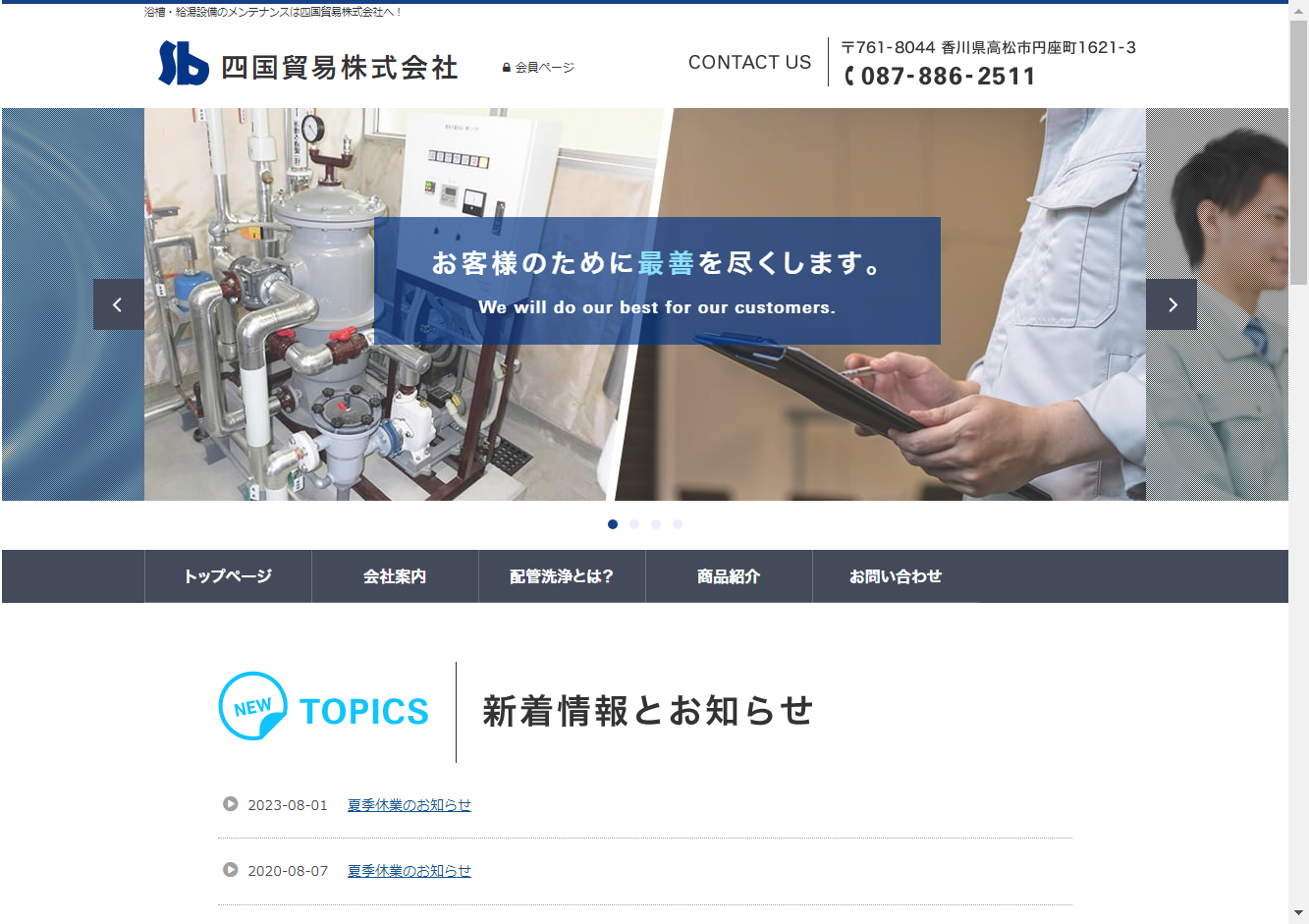 業務用から一般家庭向けまで幅広い設備の導入からメンテナンスまで対応可能な技術力と、地元徳島に根ざした地域密着型のサービスが強みとなっています。具体的には、ボイラー工事、冷蔵冷凍、冷暖房設備、食品機器設備等の業務用設備、給湯・温水・住宅設備・エアコン等の一般家庭向け設備の導入からメンテナンスまでを手がけています。
