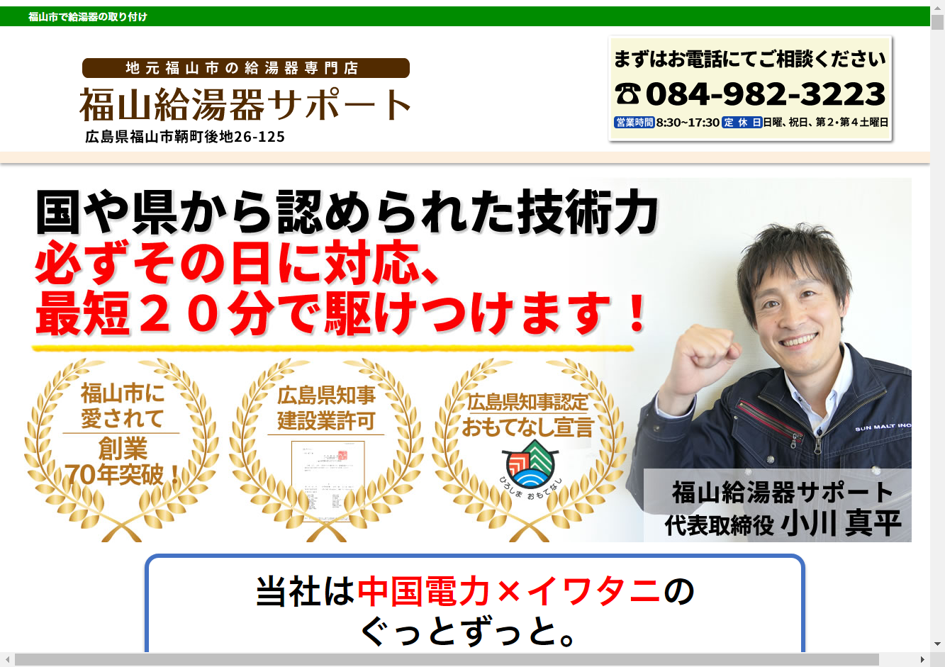 福山給湯器サポート エコキュート交換専門店 急湯デポ 香川支店(yhs株式会社)から 49.8 km 詳しく見る >