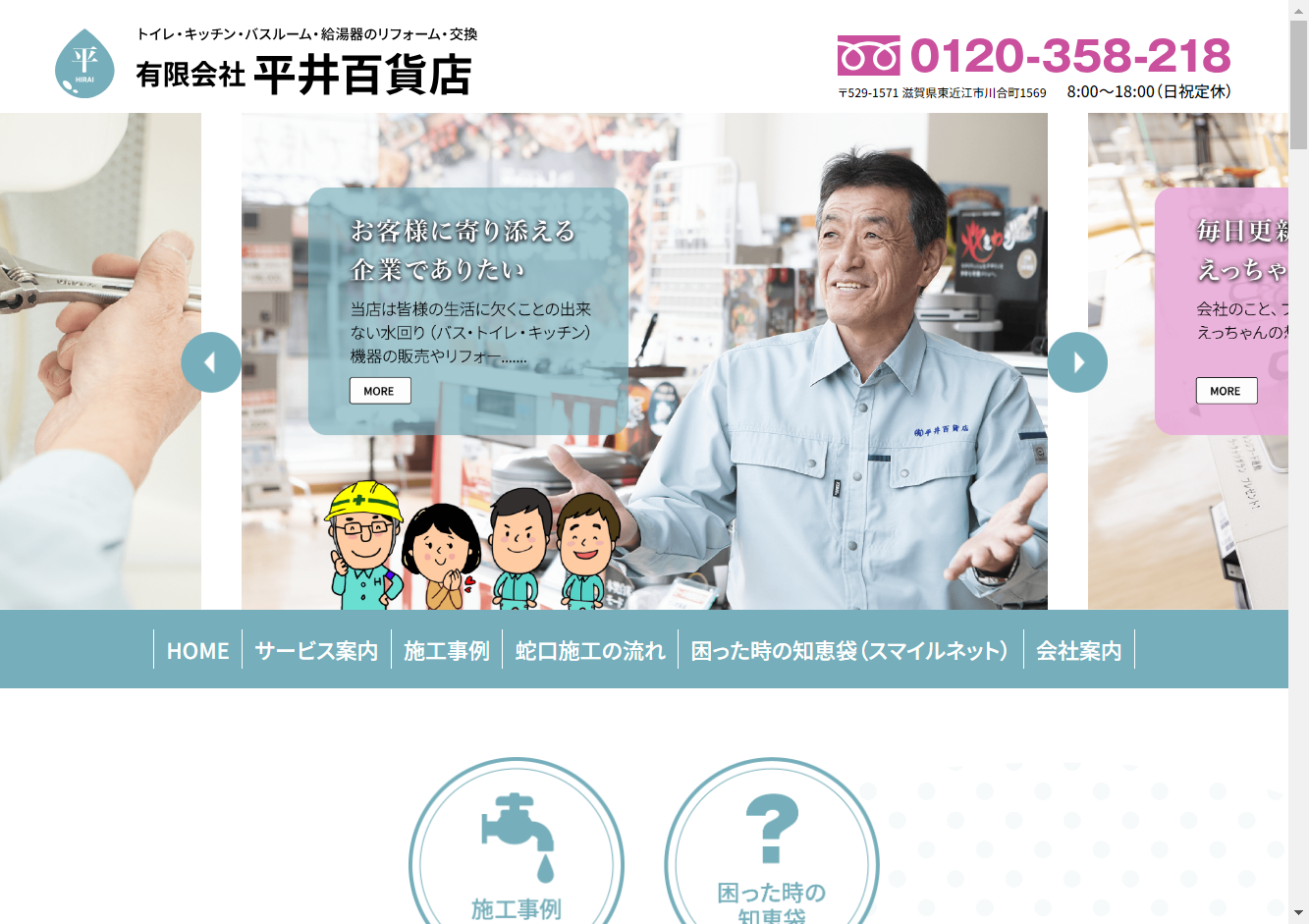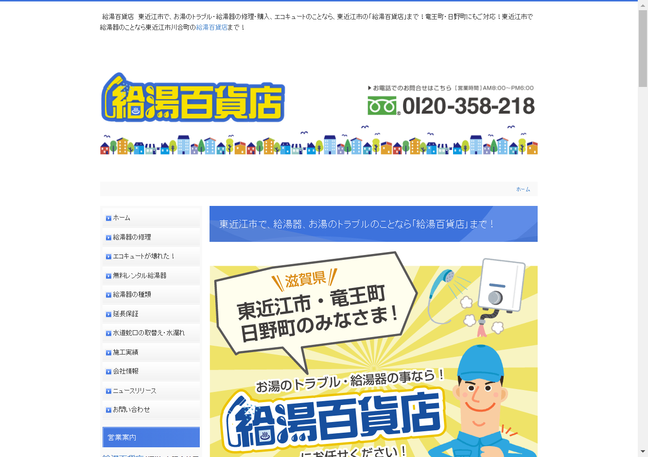 給湯百貨店(有限会社平井百貨店)まもなく100年の実績を誇る業者で、地域密着型のサービスが強みです。給湯器の修理・購入、エコキュートの修理・購入、水道蛇口の取替え・水漏れの修理など、幅広い対応が可能です。滋賀県東近江市川合町を中心に、東近江市、竜王町、日野町といった地域に対応しており、片道10km圏内であれば即座に駆け付けます。お湯のトラブルには即座に対応可能で、現地調査・お見積りは無料です。お客様の快適な生活をサポートします。お問い合わせはフリーダイヤルで受け付けています。