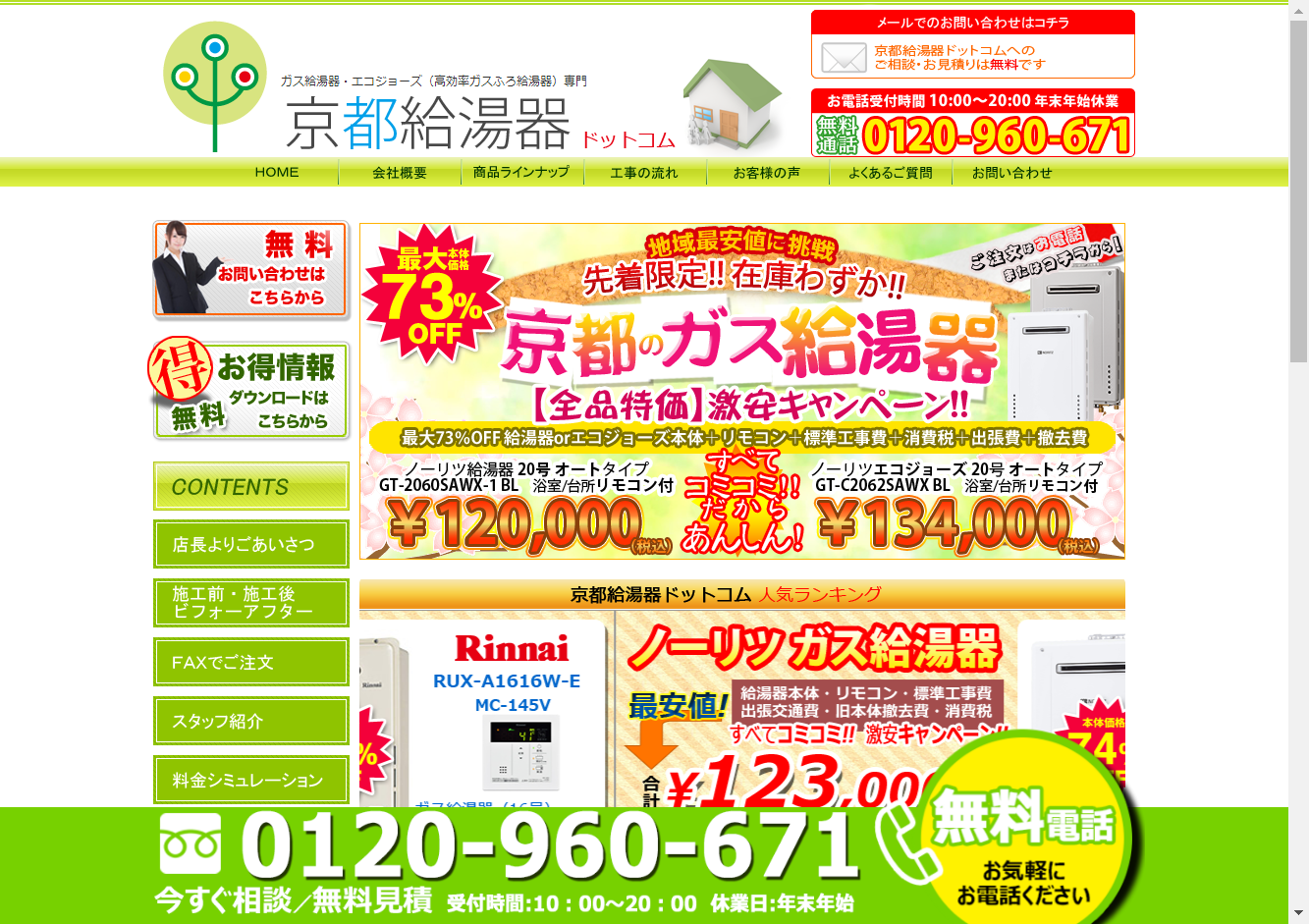 京都給湯器Station(株式会社京都水道)私たちは、京都市南区を拠点に、京都・大阪の広範囲で活動している給湯器設備の専門業者です。給湯器の販売、交換、設置、取り付け工事に対応し、専門性を活かした最高の工事を提供しています。自社職人が全ての工事を行い、必要経費を最小限に抑えるとともに、メーカーから直接仕入れることで原価に近い価格での提供が可能です。業界歴23年以上の豊富な経験と技術を持つ職人が、最高の工事を提供します。全ての工事には10年間の保証がついており、女性スタッフによるきめ細やかなサービスも特徴です。