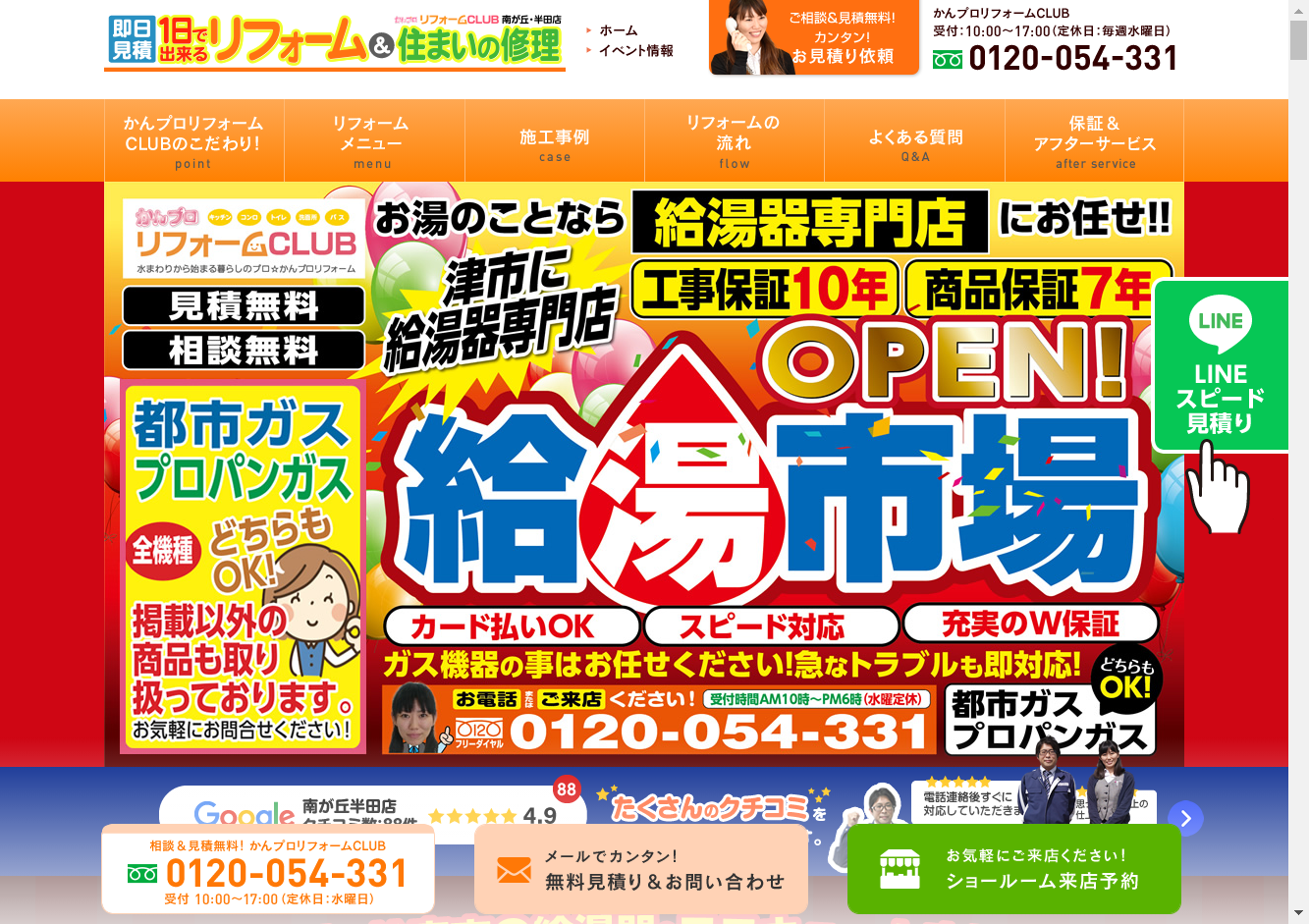 我が家の使用年数24年の湯沸かしリモコンが悪くなり早急に買い換えをしたいため、たまたま折り込みチラシから問い合わせしたところ、営業の方の説明~打ち合わせ~施工までわずか数日で完了。タイミングもあるかとは思いますが、短期間でとても丁寧、リーズナブルにして頂きました。次はトイレをお願いしようかと考えてます。有り難う御座いました。