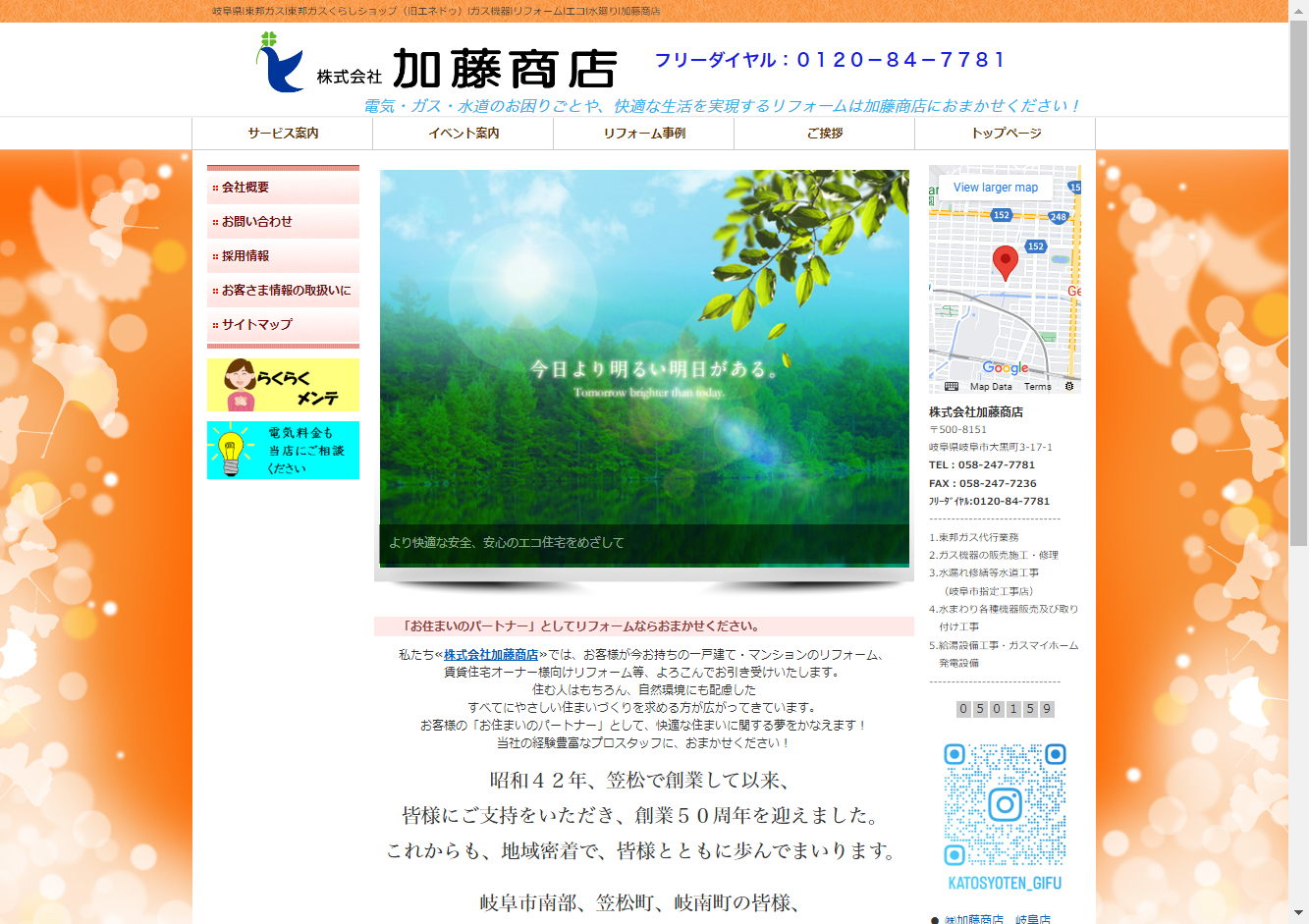 株式会社加藤商店地域に密着した会社で、岐阜県岐阜市大黒町に拠点を置き、50年以上の経験と実績を持つ業者です。主な対応エリアは岐阜市南部、笠松町、岐南町で、東邦ガスの代行業務やガス機器の販売施工・修理、水道工事など幅広いサービスを提供しています。地域密着型のサービスを提供し、お客様と共に歩む姿勢が特徴で、何でも相談できる安心と信頼の窓口を提供しています。