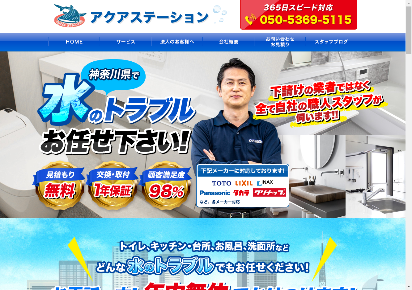 アクアステーション【水のことならなんでも対応可能な業者】として、トイレ、キッチン・台所、お風呂、洗面所の水道修理や交換、リフォームにおいて多数の実績を持ちます。