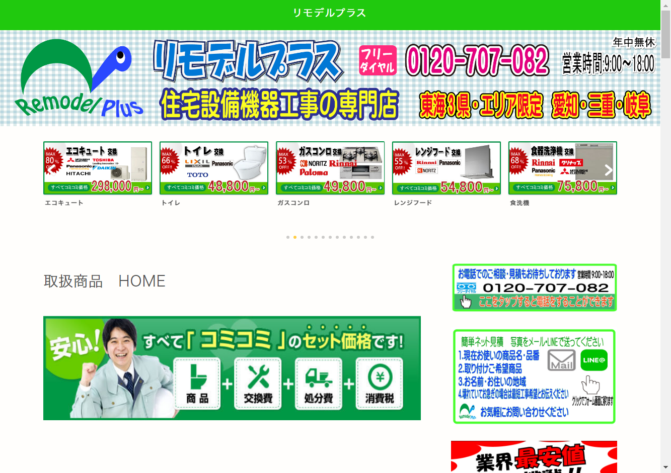 リモデルプラス(野田管工有限会社)リモデルプラス(野田管工有限会社)は、東海三県(愛知県、三重県、岐阜県)に拠点を持つ住宅設備機器工事の専門店です。名古屋市や岡崎市、一宮市など多数の市町村に対応し、給湯器、エコキュート、トイレ、ガスコンロ、レンジフード、水栓、IHクッキングヒーターの交換工事や撤去、処分などのサービスを提供しています。近日中にはキッチンリフォームのサービスも開始予定です。