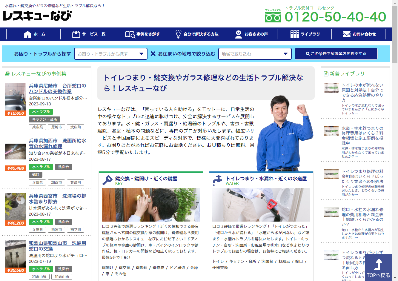 レスキューなび全国の北海道から沖縄まで、全都道府県に対応のサービスを展開しています。トイレつまり、水漏れ修理、鍵交換・開け・修理、ガラス修理・交換、雨漏りトラブル、給湯器のトラブル、害虫・害獣駆除、お庭や植木の問題対応など、日常生活の中の様々なトラブルに迅速に駆けつけ、安全に解決します。
