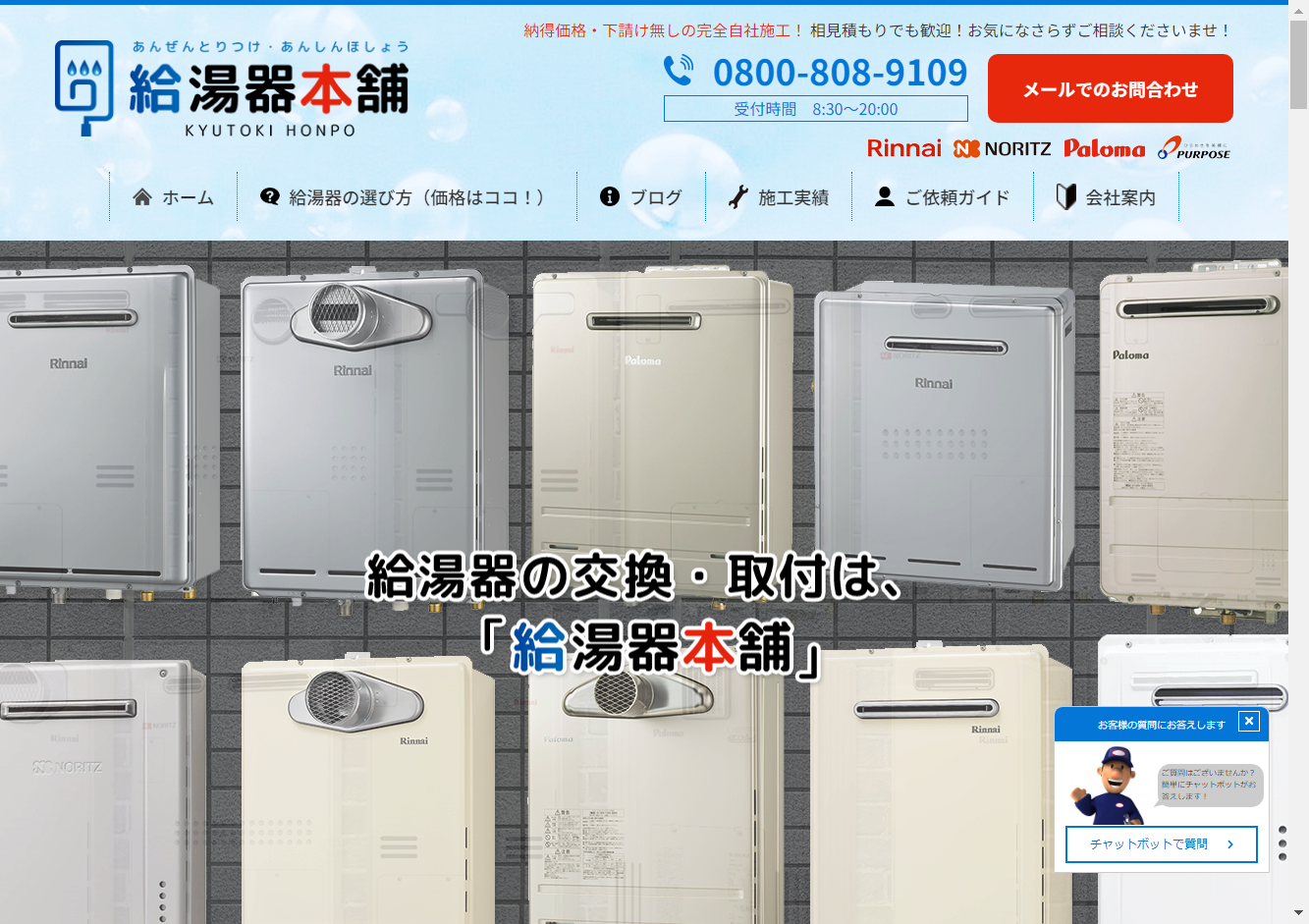 給湯器駆けつけ隊 ミズテック | 街角給湯相談所 | ガス救fromおうちのアラート | キンライサー | 給湯お助け隊 |