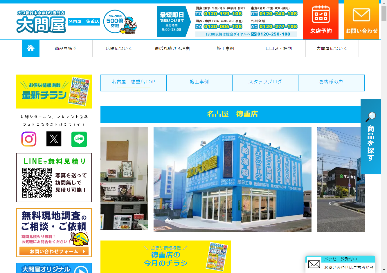 ガス給湯器大問屋 徳重店大問屋は、全国52店舗の直営店展開を行う、リフォームの大問屋です。地域密着型の体制で、お客様のニーズに合わせたきめ細やかなサービスを提供しています。