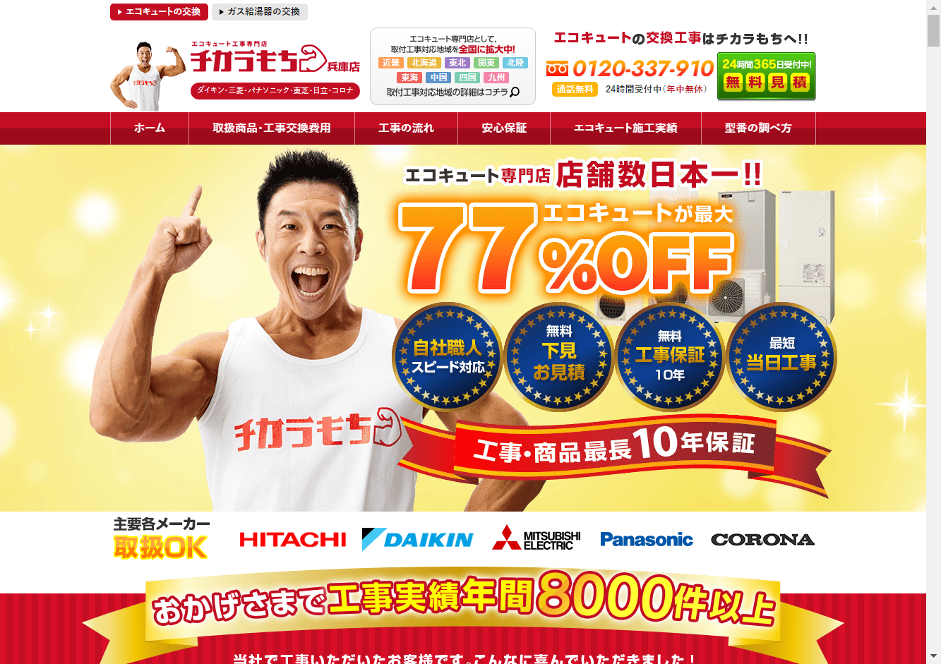 株式会社ライズカンパニー株式会社ライズカンパニーは、兵庫・神戸を拠点とするエコキュート交換工事専門店です。47店舗を有し、対応エリアは兵庫県神戸市、姫路市、尼崎市、明石市、西宮市、洲本市、芦屋市などの近畿地方を中心に全国に広がっています。自社責任施工で工事10年保証を提供し、エコキュートの交換やガス給湯器の交換を行っています。顧客へのサービス提供メリットとしては、安心の定額保証10年保証が挙げられます。工事に使用する部材は全てメーカー推奨品もしくは一流メーカーの部材を使用し、見積り金額以上の追加費用は一切請求されません。また、低価格を実現するために、人件費と仕入れルートを厳選し、カード決済や分割払い(ローン)にも対応しています。顧客の安心と利便性を重視したサービス提供を行っています。