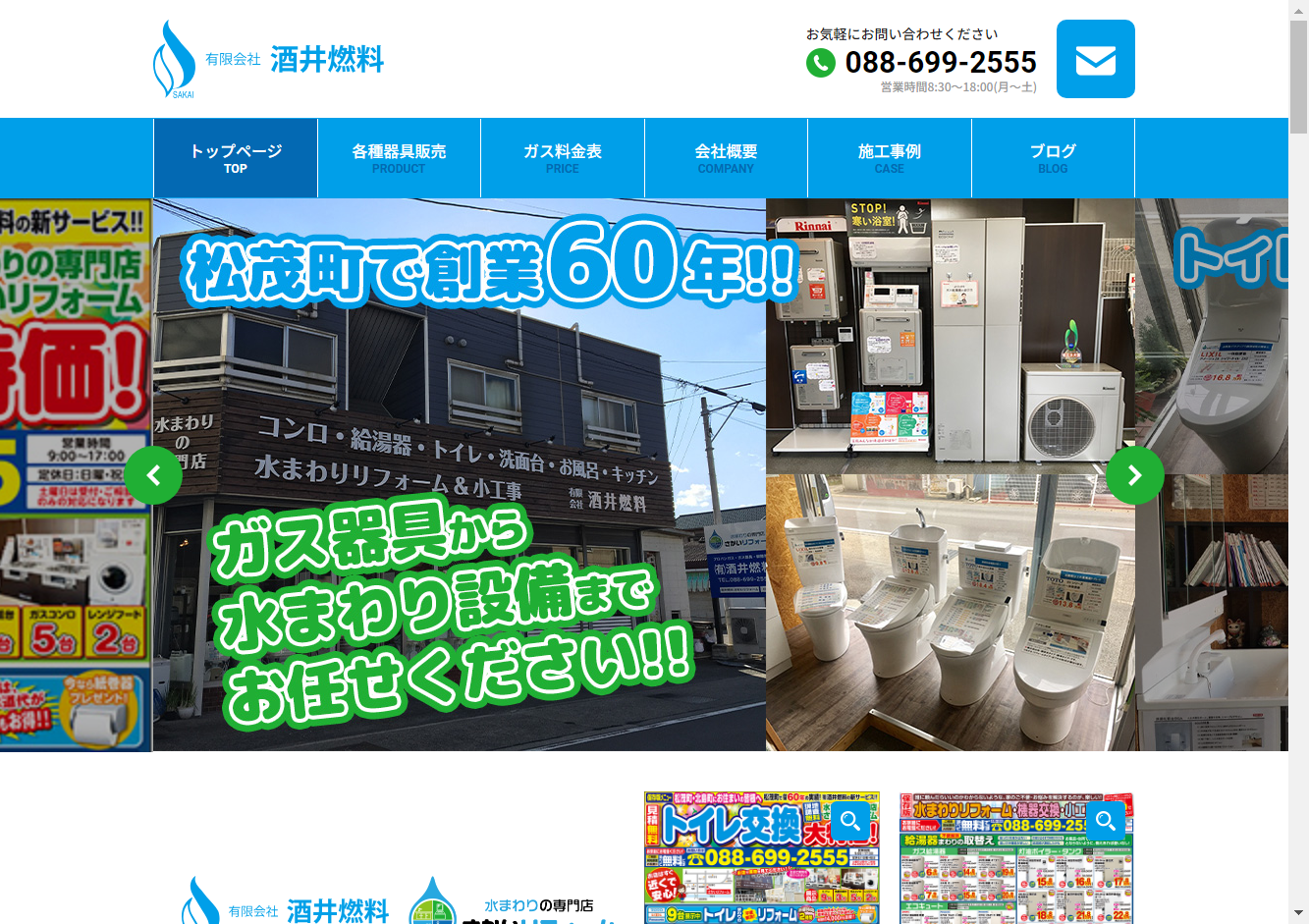 その強みは、長府製作所のメーカーサービス指定店としての確かな技術力と経験、迅速な対応力、そして各種メーカー対応の幅広さを誇ります。