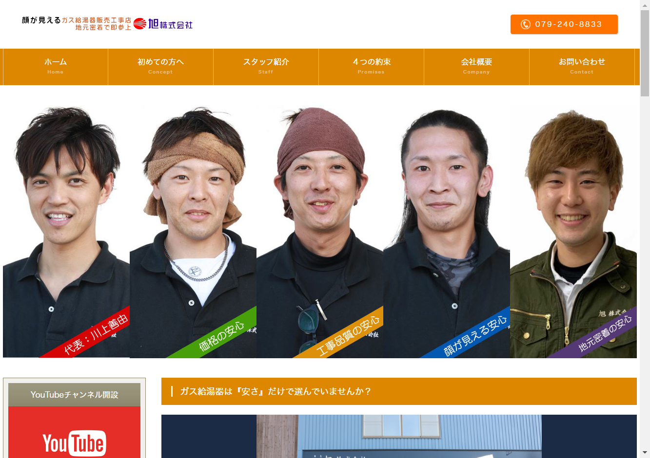 豊富な実績と経験知識を誇る、兵庫県姫路市飾磨区に拠点を置くガス給湯器専門の工事店です。スタッフが営業マンと工事スタッフを兼ねているため、伝達の不備がなく、顧客の要望を正確に把握し、間違いの無いガス給湯器交換へと導くことが可能です。