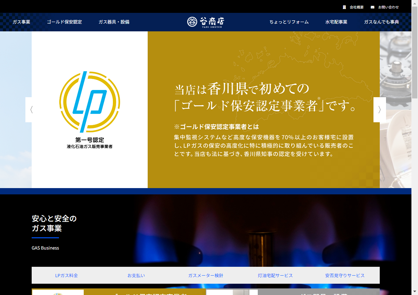 香川県で初めて「ゴールド保安認定事業者」の認定を受けており、24時間いつでも「安心・安全」のガスライフを提供できることが特徴です。また、お家の一部をリフォームすることや、新鮮な水、灯油の宅配サービス、安否見守りサービスなど、顧客の多様なニーズに対応しています。