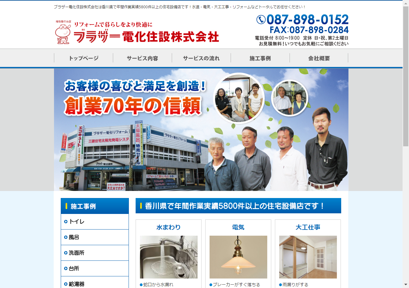 ブラザー電化住設株式会社香川県を拠点に幅広い住設工事を手掛けている、信頼と実績のある業者です。
