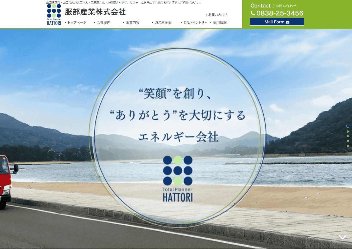 服部産業株式会社私たちは山口県萩市と山口市に2拠点を持つサービス業者です。地域のみなさまの暮らしをサポートするトータルプランナーとして、ガス・上下水道をはじめとする生活のインフラから、リフォーム、家電製品のことまで取り扱っております。