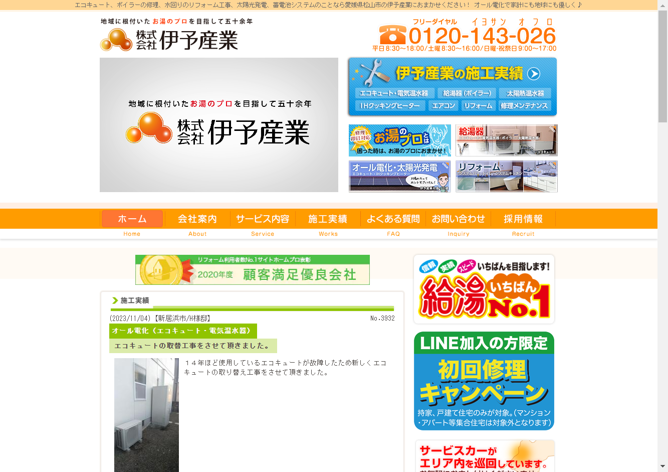株式会社伊予産業株式会社伊予産業は、愛媛県松山市を拠点に太陽光発電、オール電化、ボイラーの設置・修理からリフォームまで幅広く対応しています。多数の施工実績があり、家計にも地球にも優しいオール電化生活を提供可能です。対応エリアは松山市、東温市、伊予市、松前町、砥部町、新居浜市、西条市と幅広く、愛媛県内のお客様の幅広いニーズに対応できることが強みとなっています。特にオール電化により、家計にも地球にも優しい生活の実現をサポートします。施工実績も豊富で安心して依頼できるサービスです。地元密着のサービスで、お客様のさまざまなニーズに応えます。