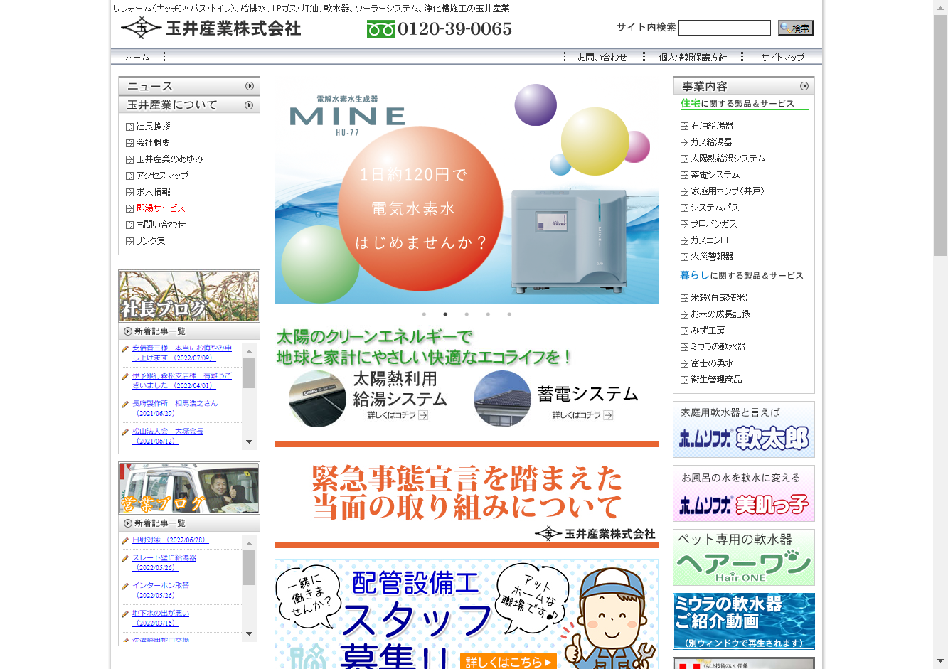 玉井産業株式会社愛媛県松山市を拠点に活動している業者で、LPガス・灯油をはじめ、太陽熱給湯システムや家庭用ポンプ、軟水器、ボイラーなど、幅広い分野のサービスを提供しています。