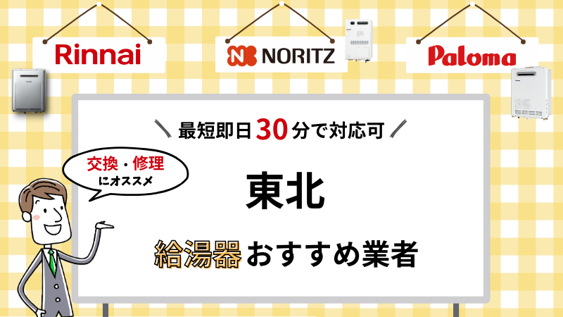 この記事では、こういった悩みのある方に向けて、東北で給湯器の交換・修理を対応してくれる業者を厳選してご紹介します!