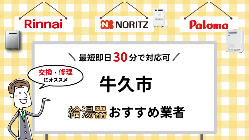 この記事では、こういった悩みのある方に向けて、牛久市で給湯器の交換・修理を対応してくれる業者を厳選してご紹介します!