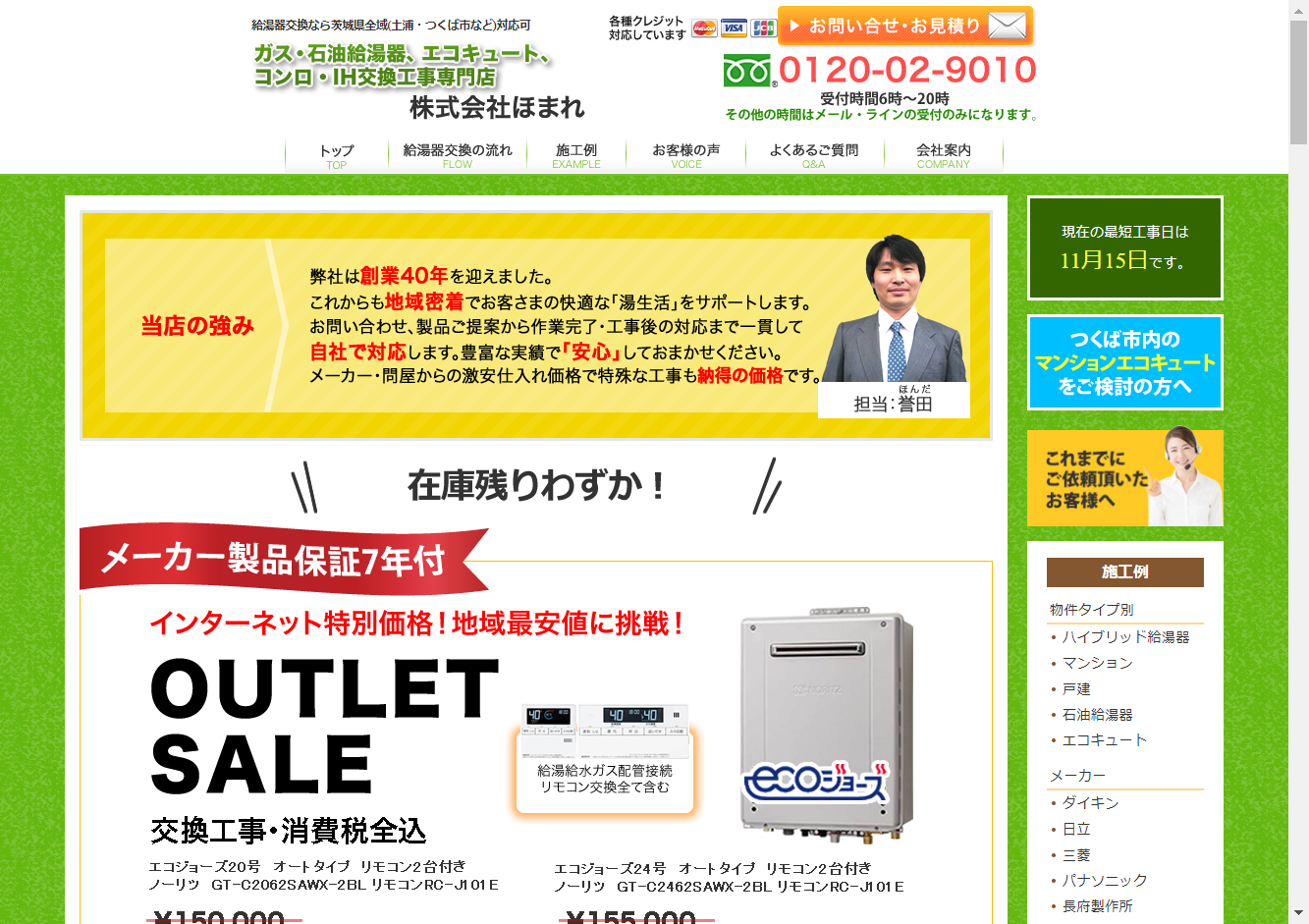 - | ![]() | 埼玉、東京、茨城、千葉 | - | 工事と商品の両方に対し10年間無料保証 | - | - | 現金、クレジットカード、PayPay、d払い、楽天ペイ | - | 0120-852-078(9時~18時) メール又はLINE | - | |