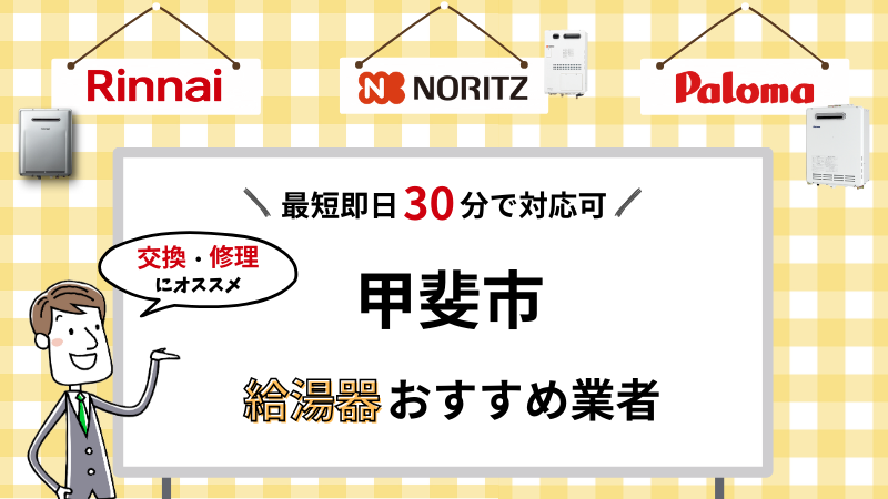 この記事では、こういった悩みのある方に向けて、甲斐市で給湯器の交換・修理を対応してくれる業者を厳選してご紹介します!