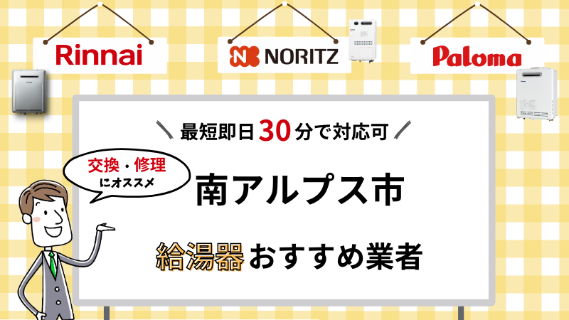 この記事では、こういった悩みのある方に向けて、南アルプス市で給湯器の交換・修理を対応してくれる業者を厳選してご紹介します!