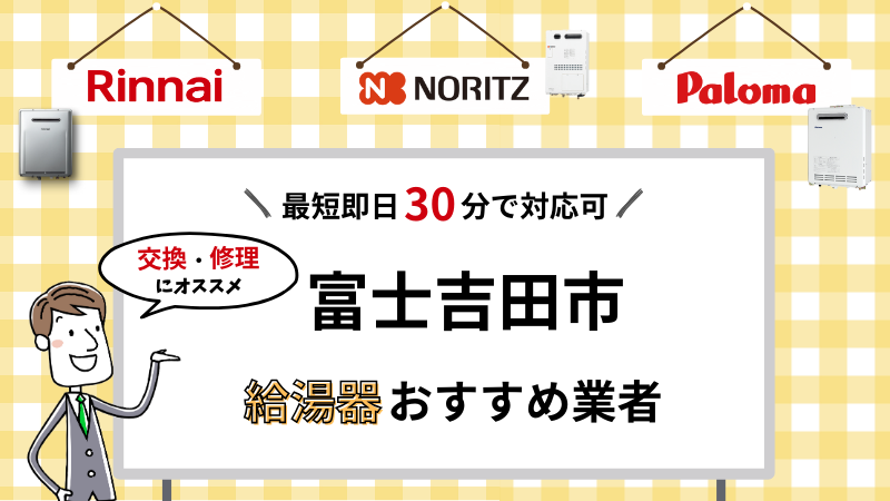 この記事では、こういった悩みのある方に向けて、富士吉田市で給湯器の交換・修理を対応してくれる業者を厳選してご紹介します!