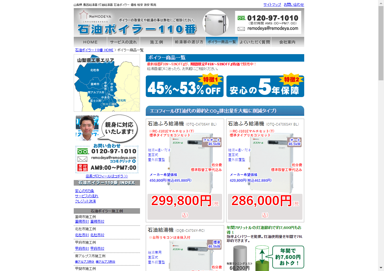 最新式給湯器リースで燃費向上、安全お得に利用可能。一括仕入れ販売による低価格設定。灯油ボイラーの撤去も可能。