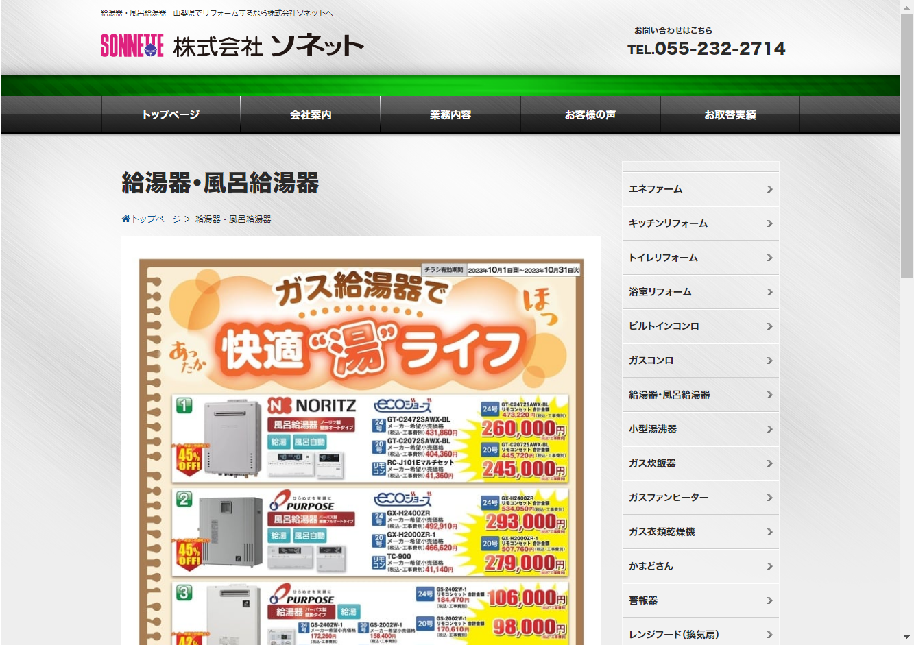 最新式給湯器リースで、従来よりも約15%燃費が向上する製品を提供。一括仕入れ販売による低価格設定。