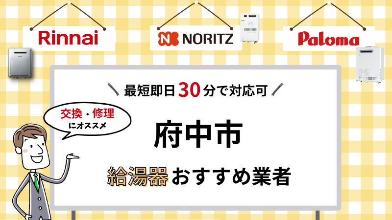 この記事では、こういった悩みのある方に向けて、府中市で給湯器の交換・修理を対応してくれる業者を厳選してご紹介します!