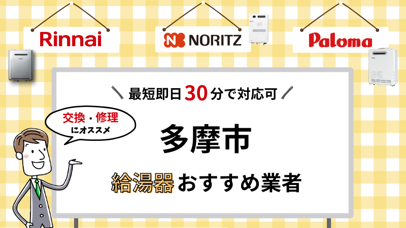 この記事では、こういった悩みのある方に向けて、多摩市で給湯器の交換・修理を対応してくれる業者を厳選してご紹介します!