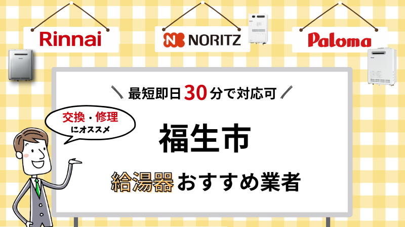 この記事では、こういった悩みのある方に向けて、福生市で給湯器の交換・修理を対応してくれる業者を厳選してご紹介します!