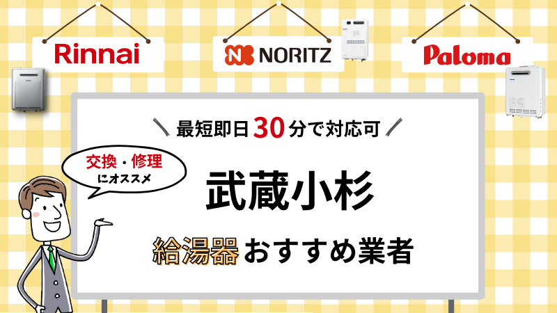 この記事では、こういった悩みのある方に向けて、武蔵小杉で給湯器の交換・修理を対応してくれる業者を厳選してご紹介します!