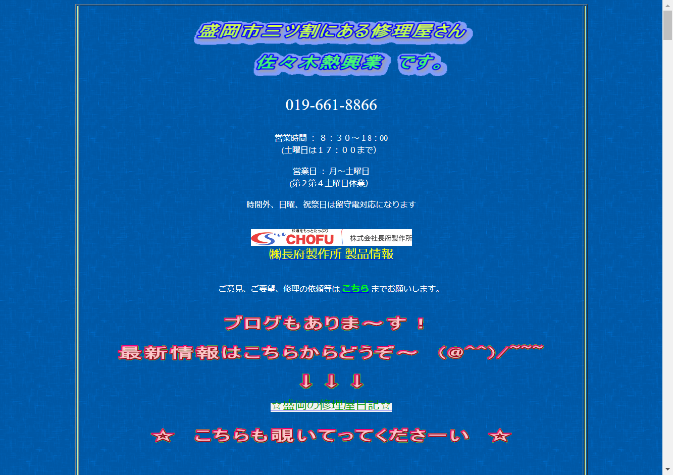 - | ![]() | - | 8:00~18:00 | - | - | 日祝(対応可能な場合もございますので、まずはお気軽にご相談下さい) | |