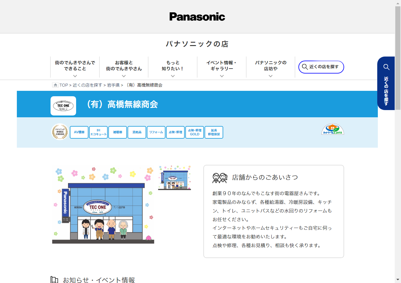 Panasonic shop TEC ONE タカハシムセン(有限会社 高橋無線商会)詳しく見る >