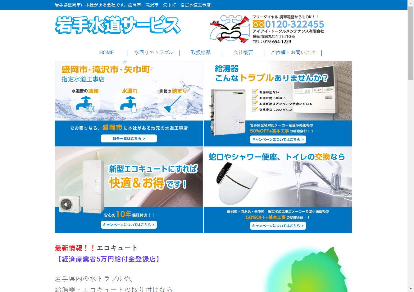 - | ![]() | 対応エリア:盛岡市を中心に滝沢市、雫石町、八幡平市、岩手町、矢巾町、紫波町、花巻市、遠野市、北上市、奥州市、平泉市、一戸町、二戸市、宮古市 | 8:30~18:00 | - | - | - | |