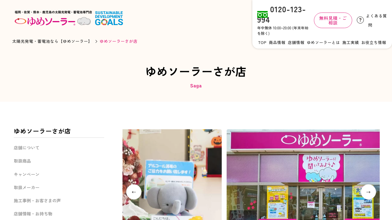 ゆめソーラー さが店ゆめソーラー さが店は、佐賀県で太陽光発電・蓄電池の導入を検討している方にとって、頼りになる存在です