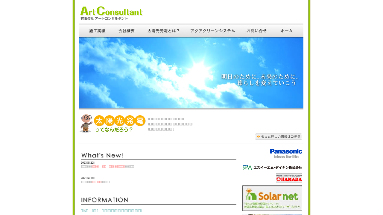 有限会社アートコンサルタント有限会社アートコンサルタントは、高知県内で太陽光発電システムの販売・施工・アフターケアをワンストップで行う会社です。