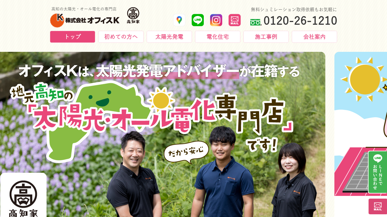 株式会社オフィスK株式会社オフィスKは、高知県全域で太陽光発電とオール電化の専門的なサービスを提供している会社です。