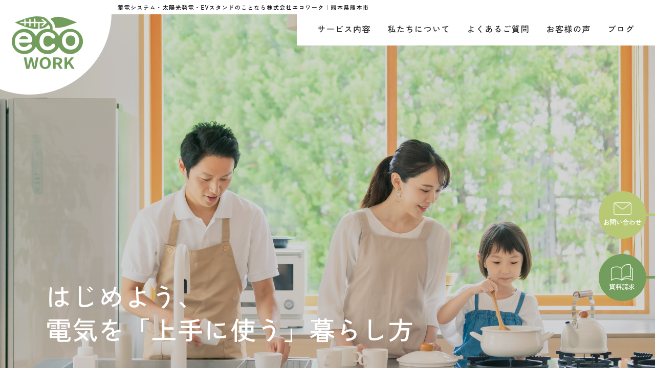 株式会社 ECO WORK株式会社ECO WORKは、熊本県で家庭用蓄電システムの販売台数No.1の実績を持つ会社です。
