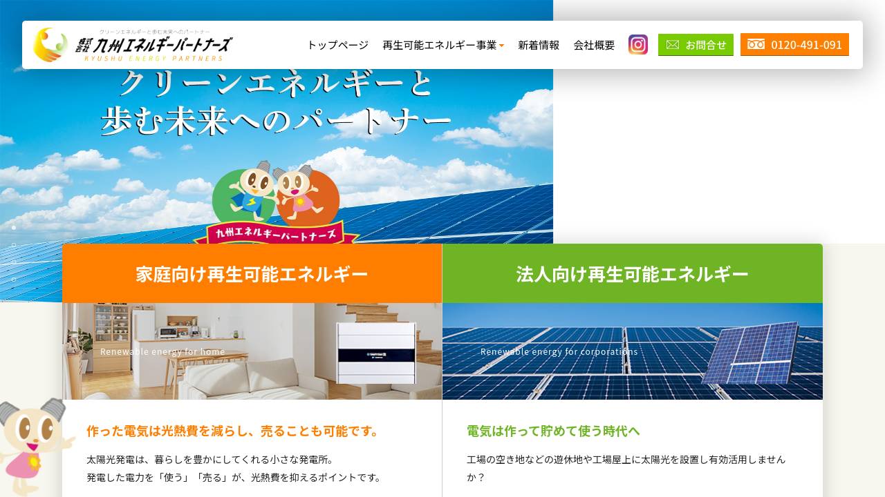 株式会社 九州エネルギーパートナーズ株式会社 九州エネルギーパートナーズは、熊本県を拠点とする太陽光発電・蓄電池の専門会社です。