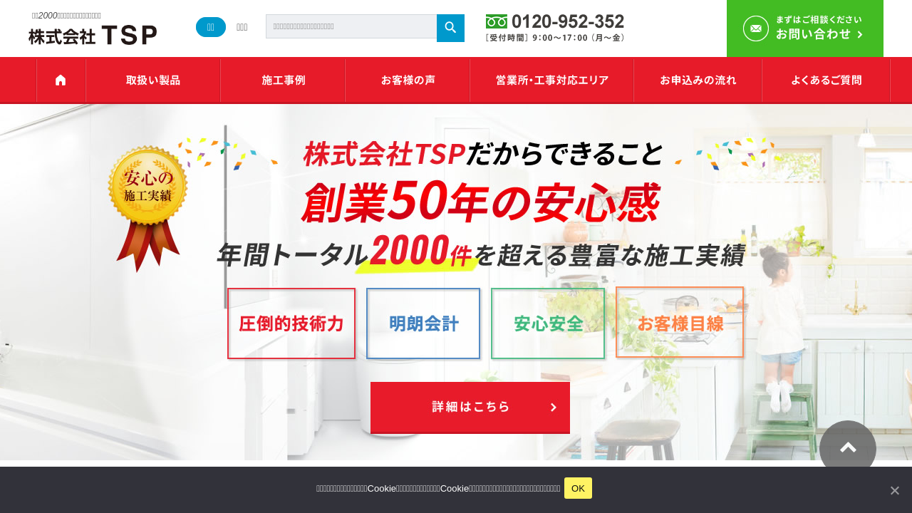 株式会社TSP株式会社TSPは、年間2000件を超える施工実績を持つ、住宅設備機器の販売・施工を行う会社です。