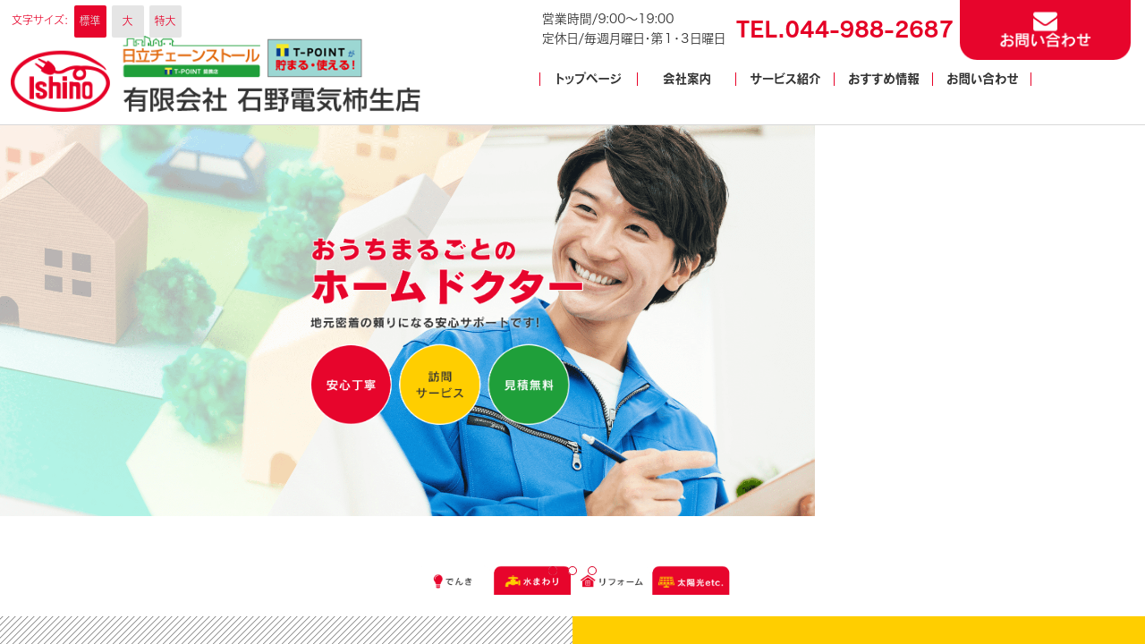 有限会社石野電気柿生店有限会社石野電気柿生店は、川崎市麻生区に拠点を置く地域密着型の電気店です。