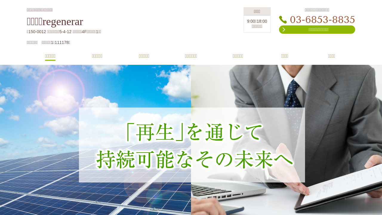 株式会社regenerar(株式会社レゲネラ)株式会社regenerar(株式会社レゲネラ)は、東京都を拠点に全国で遊休地や畑などの売買、太陽光発電所の企画提案などを手掛ける会社です。